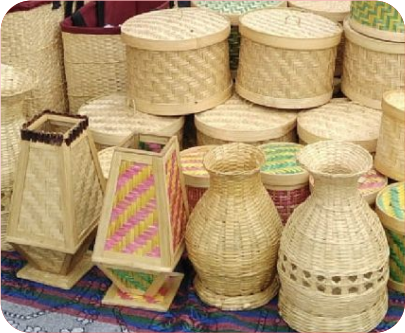 Cane and Bamboo occupy a distinctive place in the life of Tripura. A wide variety of wonderful objects is made out of cane and bamboo. A variety of items are produced, including furniture, and table mats & other mat products, lampshades, etc. Bamboo screens made from split bamboo are also very popular.