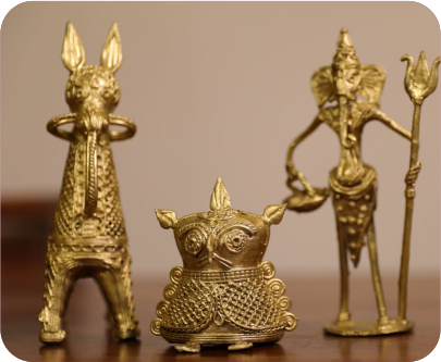 Bastar Dhokra is a craft form of Harappa & Mohenjodaro civilizations. It is made of 27 intricate steps without the help of any molds, which makes each product a masterpiece in itself. This also distinguishes it from Dhokra craft made in other parts of the world.