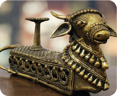 The designs mainly involve intricate handwork of drawing and arranging of the bell metal wires. Mostly, the Dhokra Products depict the tribal culture, people and their tools, instruments, animals, and nature. Artisans make idols of deities, and puja accessories like bells, oil lamps, incense stick holders, etc. The Dhokra Metal Craft has its very foundation laid in the religious beliefs and practices of the people.
