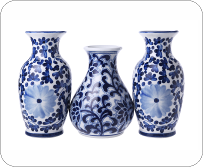 Some of this pottery is semi-transparent and mostly decorated with animal and bird motifs. The range of items is primarily decorative, such as ashtrays, vases, coasters, small bowls, and boxes for trinkets.