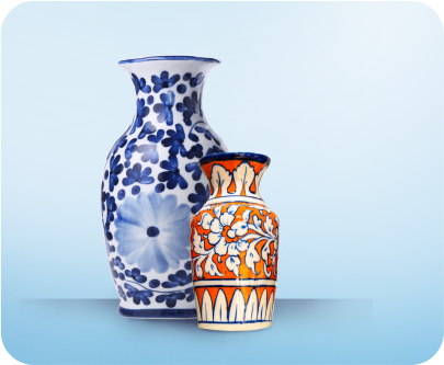 The use of blue glaze on pottery is an imported technique, first developed by Mongol artisans who combined Chinese glazing technology with Persian decorative arts. This technique traveled east to India with early Turkic conquests in the 14th century. During its infancy, it was used to make tiles to decorate mosques, tombs, and palaces in Central Asia. Later, following their conquests and arrival in India, the Mughals began using them in India. Gradually the blue glaze technique grew beyond an architectural accessory to Indian potters. From there, the technique traveled to the plains of Delhi and in the 17th century went to Jaipur.