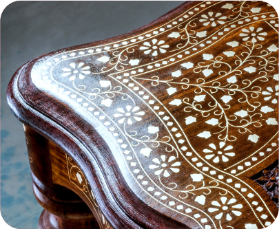 Each step of making rosewood inlay involves an artisan who is an expert in that field so that there are no compromises in the quality and the design of the products. This starts with procuring desired materials first. The woods are then cut in the desired shape and followed by proper seasoning. Once it is done, the final set of designs is made on them. Once this is completed, the final tasks involve putting color, chiseling, and filling up portions with charcoal.