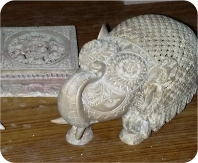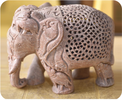 Today small items of utility and decor are also produced such as tabletops, boxes, coasters, trays, lampstands, small bowls, jaalis, candle stands, and decorative items. The most popular item is the undercut elephant.
