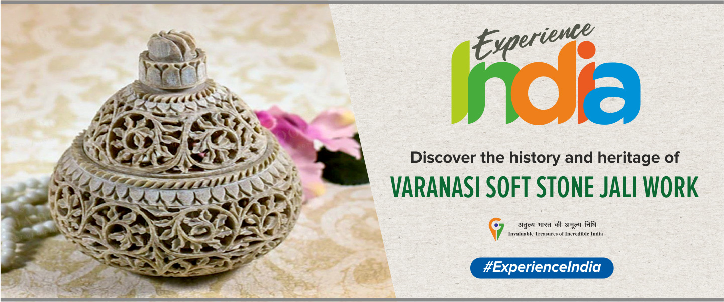 Jali or fretwork is intricately carved on soft stone and its process requires supreme mastery of masonry and design making. The Varanasi soft stone jali work epitomizes both high skill and superior quality of craftsmanship. Delicately chiseled and decorated with inlay work these elaborately carved jalis demand time in their making along with the skill and creativity of the masters. In Varanasi, the jali craftwork can be seen on forts, zamindari homes, places of worship, and ancient monuments all of which are a testimony to its antiquity. Statues of religious significance are also made using this technique. To further enhance the beauty of these sculptures they would be embedded with semi-precious stones and shell-work. Given their small size and the intricate work of jali making the Varanasi soft stone craft remains the skill of the masters.