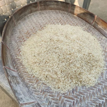 Gobindobhog rice, locally called Khas Dhan, is one indigenous variety of rice that is produced locally. It has a distinct aroma and is white non-Basmati type, buttery, short- grain rice. It got its name as it constitutes and essential ingredient of the offerings made to lord Govinda.