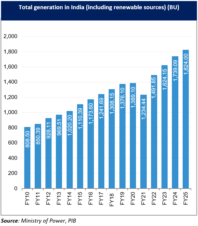 *The all-India peak power demand in FY26 is expected to be 277 GW. In FY25, India consumed 1,694 billion units of electricity, an increase of 33% over FY21, translating into a 5-year CAGR of 7.4%.