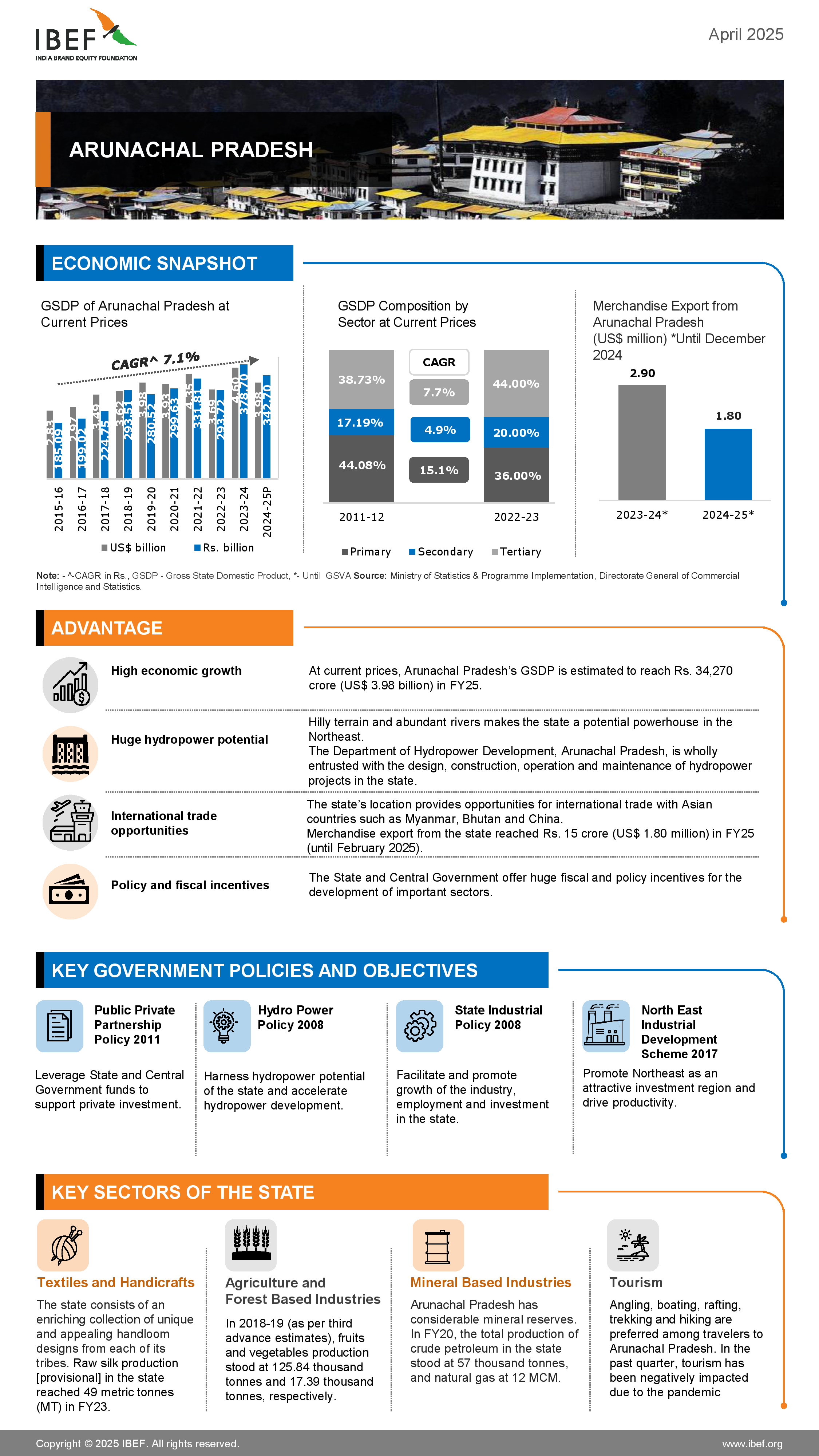 Arunachal Pradesh has an area of 83,743 sq km, and is the largest state in the Northeast of India that offers diverse topography opportunities for non-timber based industries such as bamboo, cane and medicinal plants.