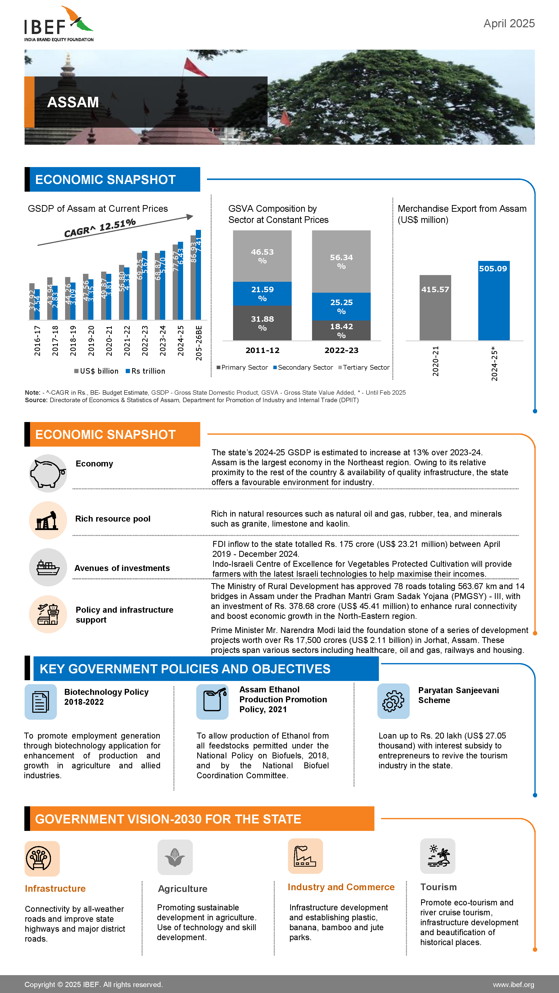 Assam has the single largest tea growing area in the world, constituting around one-seventh of the global tea production