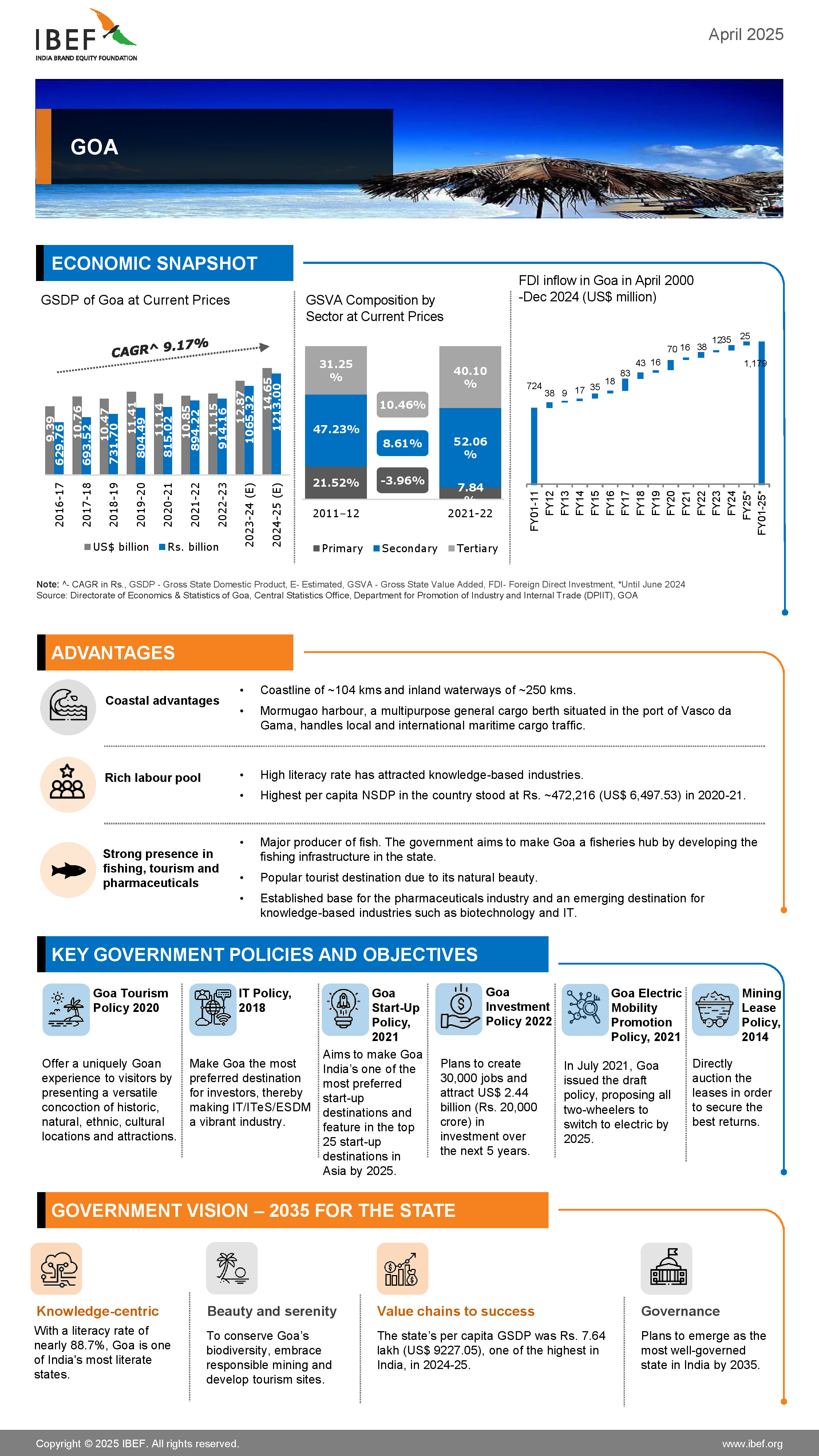 The tourism industry in Goa directly contributes 16.43% to the state's GDP and employs ~35% of the state's population.