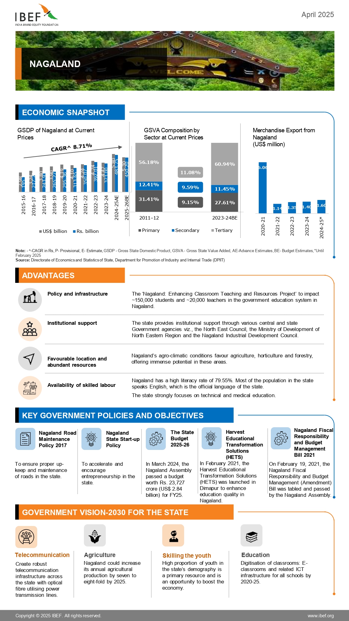 Nagaland’s estimated hydropower generation potential stood at 1,452 MW and the overall installed hydro capacity stood at 66.33 MW in May 2024, presenting huge investment opportunities in the state.