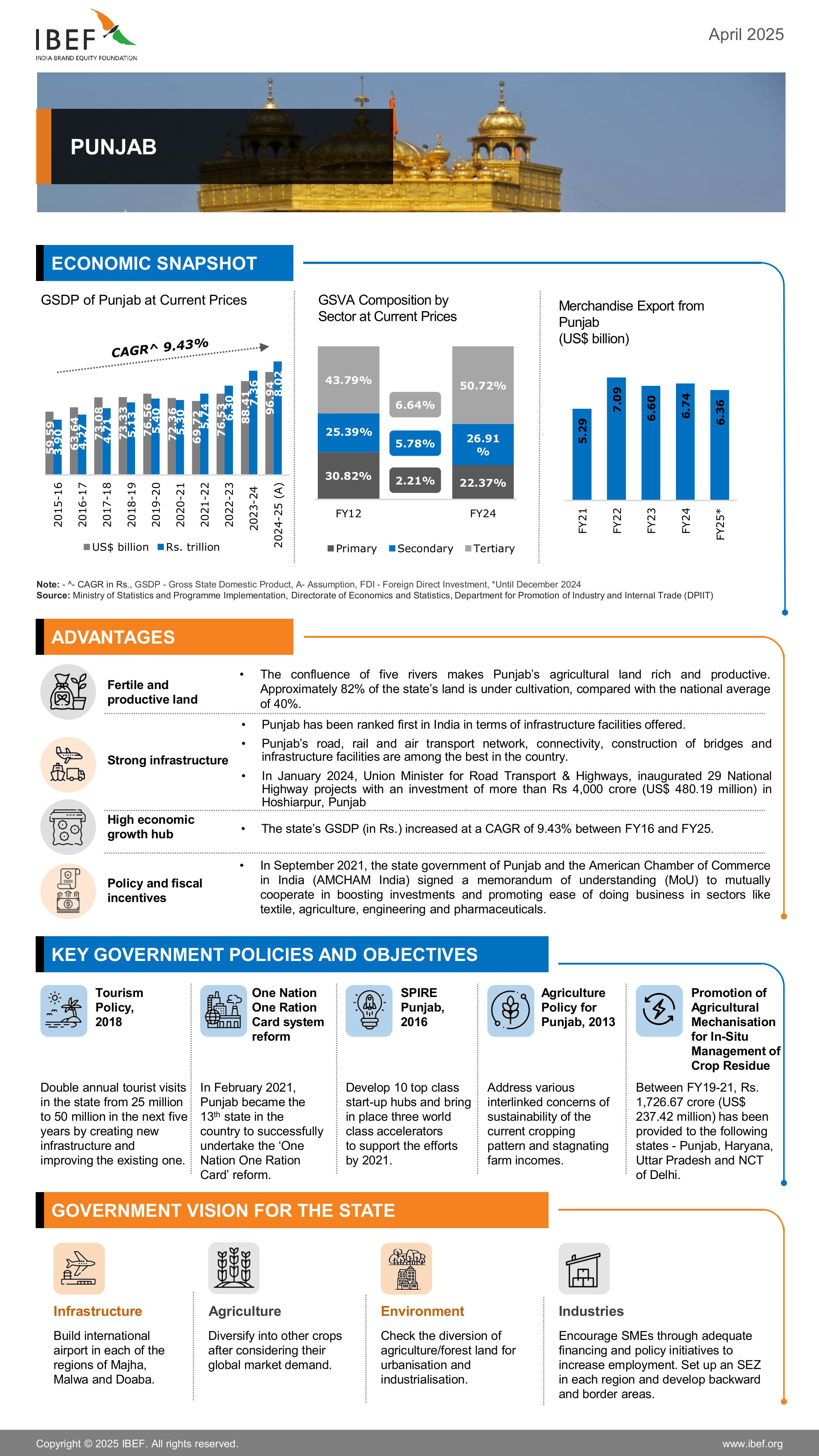 Punjab is the source of 95% of India’s woollen knitwear production, 85% of India’s sewing machine production, and 75% of India’s sports goods production.