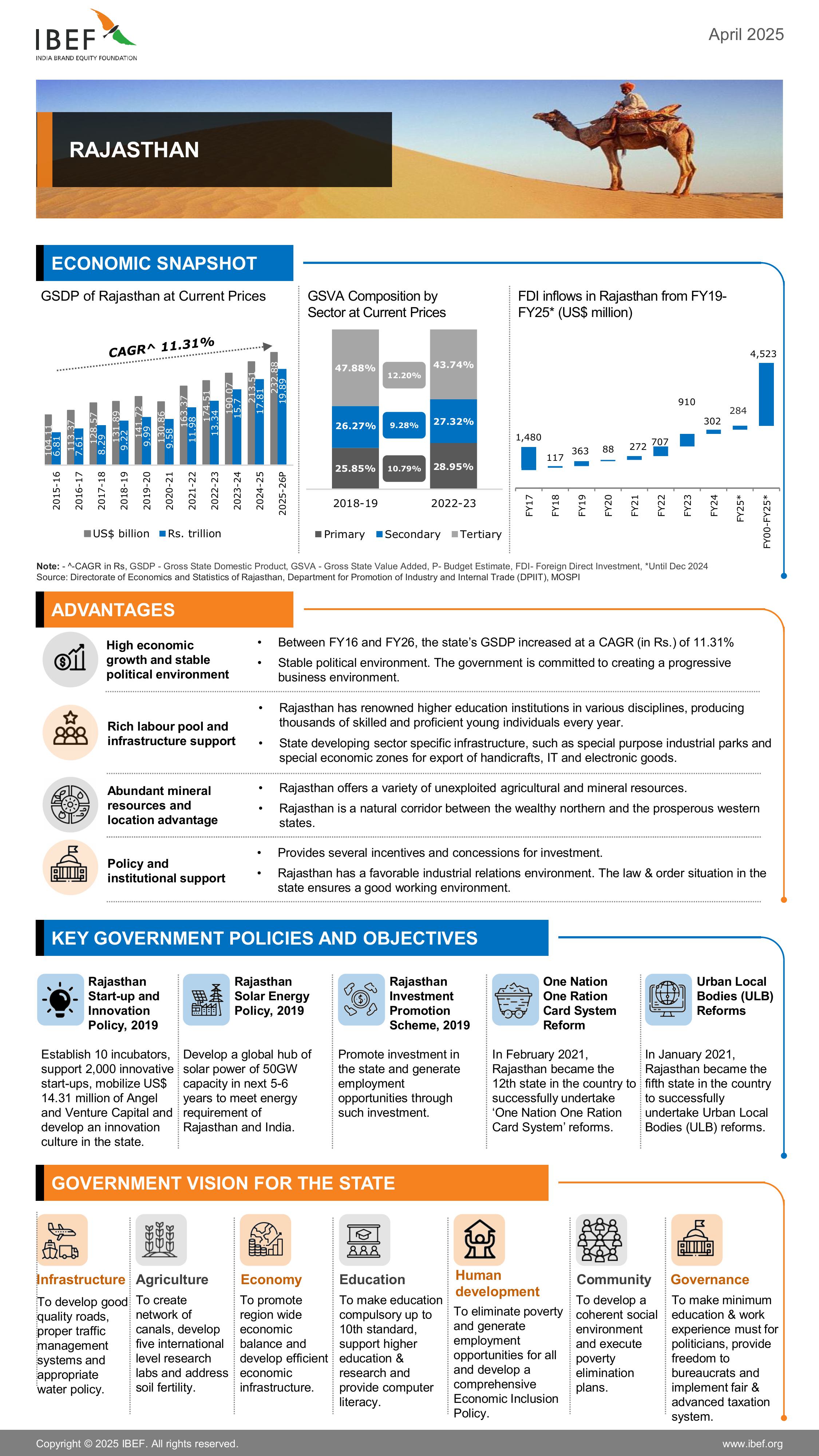 Rajasthan ranks first in India in the production of oilseeds, rapeseed, and mustard and is the second largest producer of garlic, nutri-coarse cereals, coriander, and cumin.